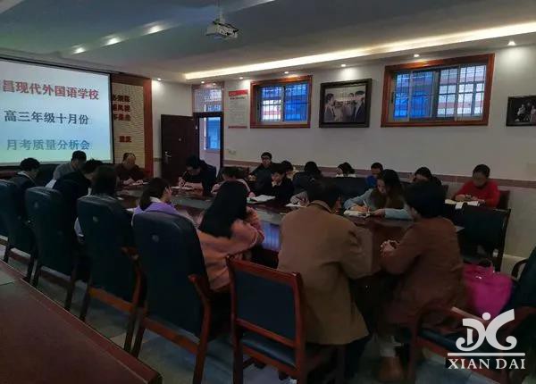 为了反思阶段教育教学,调整与完善高三复习的教学安排,提升后期教育教学质量,11月6日下午,南昌现代外国语学校高三年级组召开了本学期第二次月考质量分析会。总校长杨端煌、高中部校长何雪平、高三年级组长肖云、教务处主任徐成以及高三年级全体教师参加。会议由政教主任李志峰主持。