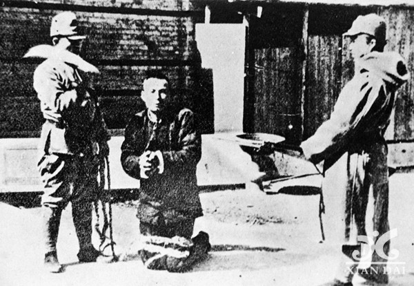 南京市民被日军捆绑刺杀。图片来源:新华社