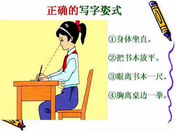 2.写字时,坐姿正确——“头正、身直、脚放平”,还要注意笔画笔顺。
