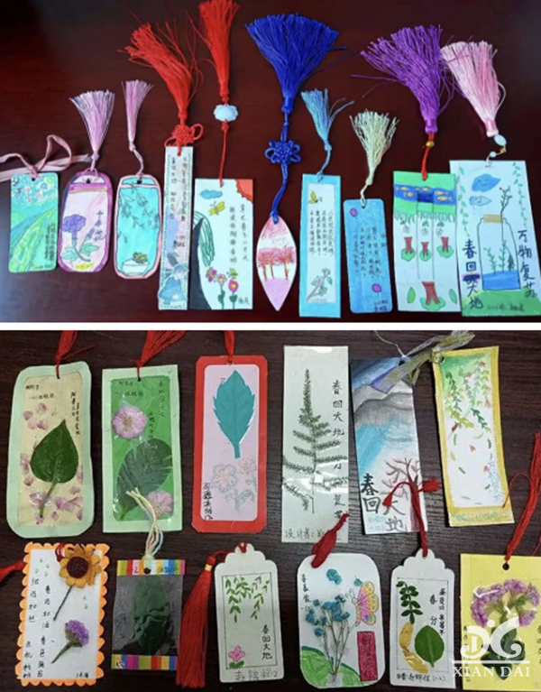 二年级的同学们利用休息时间,拿起画笔,呼朋唤友,相约到社区、公园、郊外等地去“寻找春天”。围绕主题,他们展开丰富的创意想象,在爸爸妈妈的帮助下,制作了春意满满的精美书签。