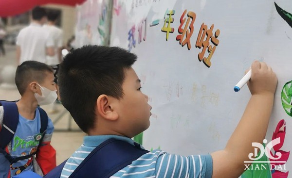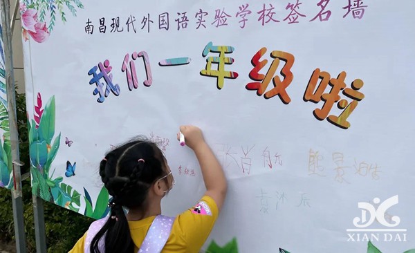 签名墙上,每个孩子认真签下自己的名字。家长和同学们洋溢的笑脸,彰显出他们对开学的期盼,对学校的向往。