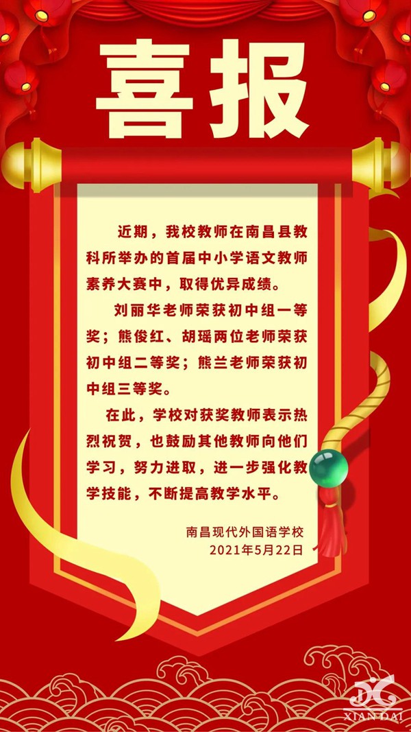 喜报 | 我校教师在南昌县首届中小学语文教师素养大赛中荣获佳绩!