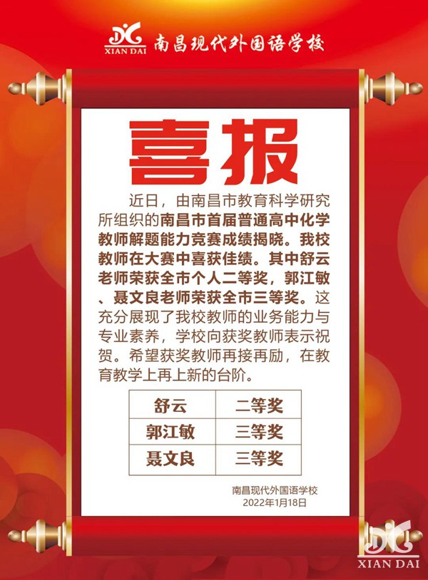 阅读上一篇:再传喜报 | 南昌现代外国语学校教师喜获佳绩!