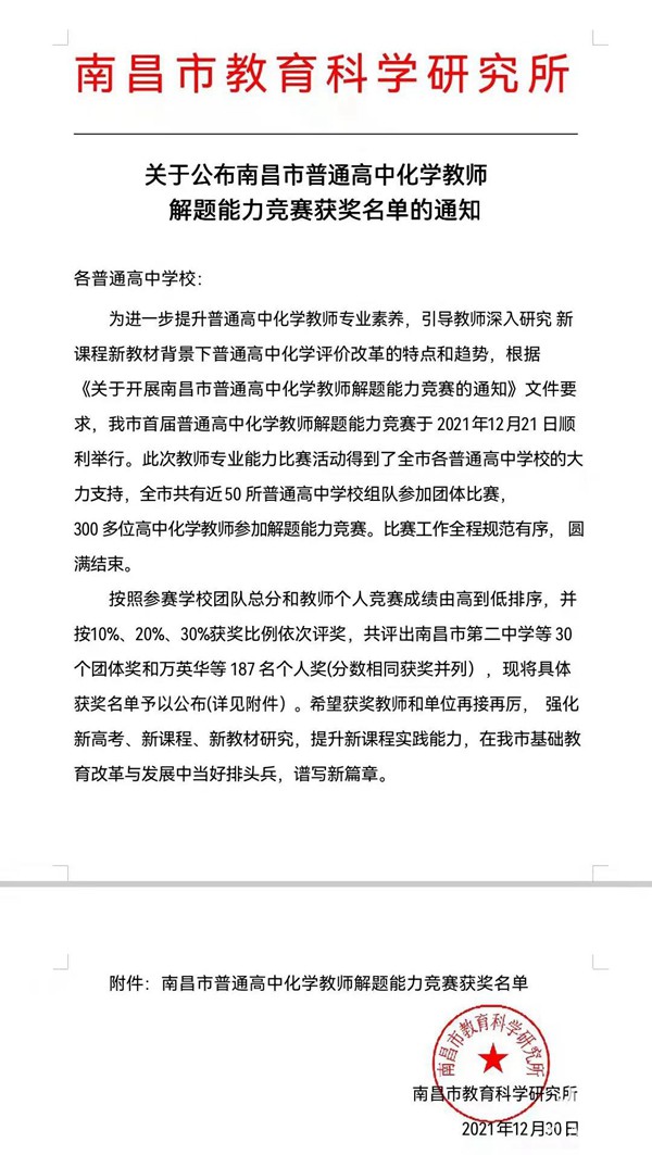 喜报 | 我校3名教师在市首届普通高中化学教师解题能力竞赛中荣获多个奖项!